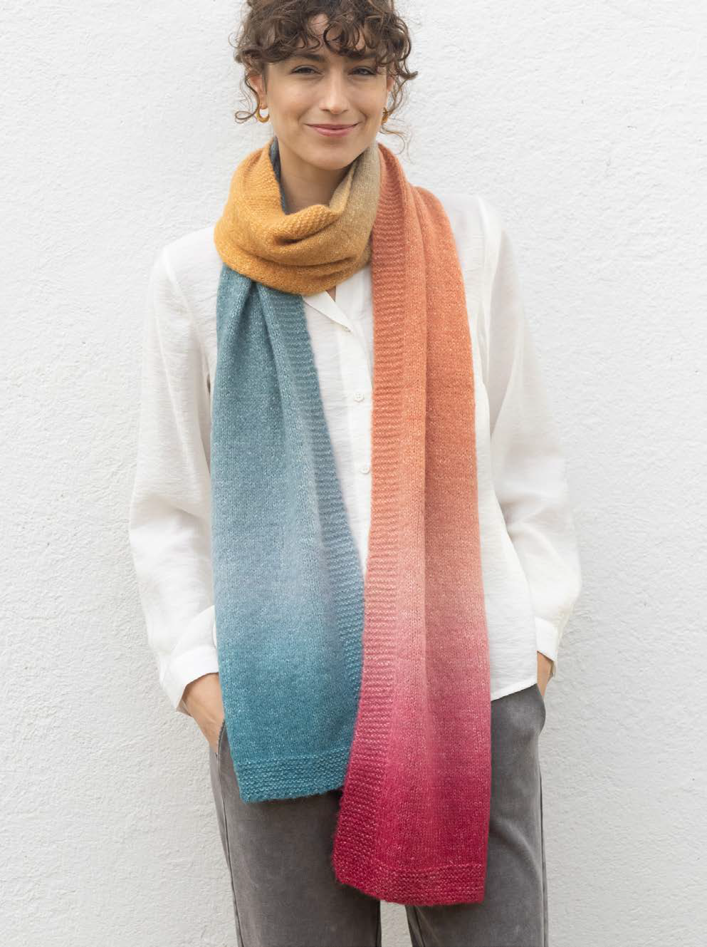 Déjate sorprender por Katia Holi, un hilo único con un degradado perfecto en ovillos de tipo cake de 200 g. Su innovadora mezcla de lana, acrílico y poliamida combina consistencia, esponjosidad y un sutil efecto peluche muy en tendencia. ¡Teje una bufanda o crochetea un chal con un solo ovillo! Atrévete a crear piezas únicas y multicolor con Katia Holi.